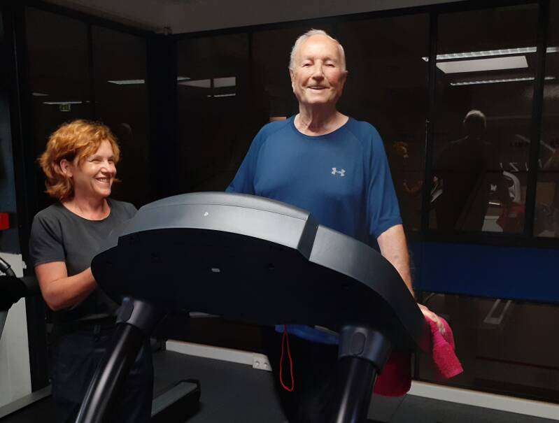 Zou ik toen alleen zijn gaan sporten zou ik vrij snel zijn afgehaakt. Je voelt je dan al gauw door anderen bekeken, omdat ik vanwege mijn COPD-klachten geregeld moet hoesten. Daarbij heb ik door deze