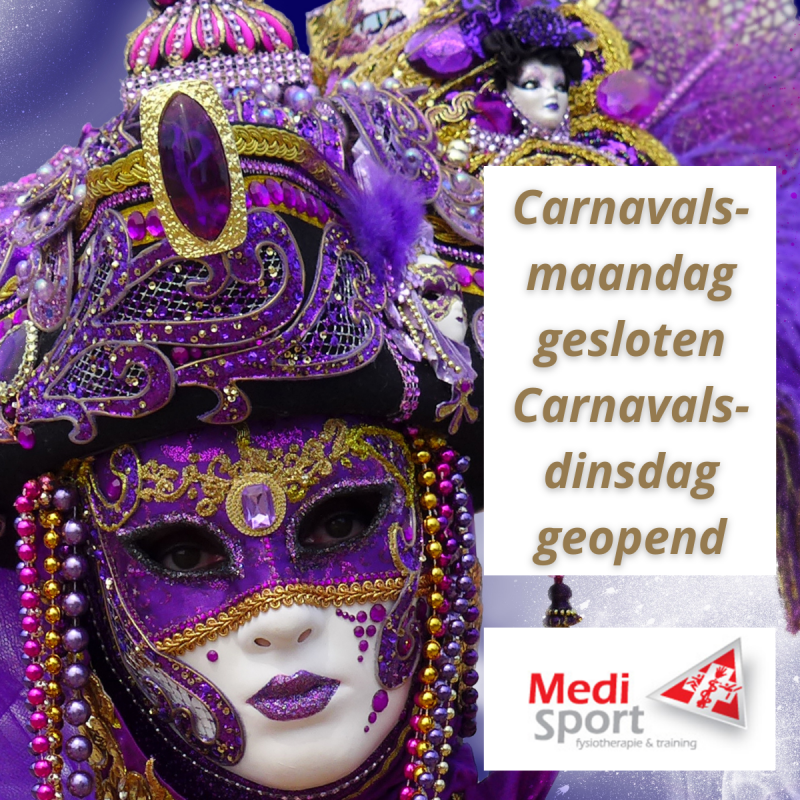 Carnavalsmaandag 20 februari zijn onze praktijklocaties in Geleen, Born en Heerlen gesloten. Vanaf carnavalsdinsdag zijn de praktijken van Medi Sport Fysiotherapie open.
